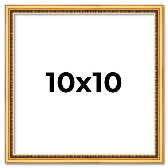 10x10 Frame Beaded Gold Solid Wood Picture Frame | 0.75 Inches Moulding Width | Liscio Oro