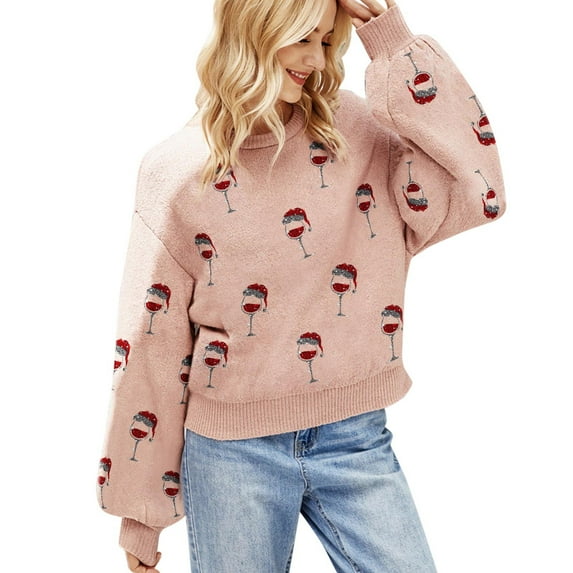 Womens Slim Sweater Pullover Fashion Sweater For Women Christmas Knitted Sweater Cute Santa Head Pattern Crewneck Pullover Sweater