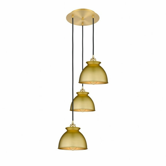 Collection: Adirondack, Material: Brass, Finish Color: Satin Gold, Width: 9.88", Height: 9.25", Length: 9.88", Chain Length: 120", Lamping Type: Incandescent, Number Of Bulbs: 3, Wattage: 100 Watts, Dimmable: Yes, Moisture Rating: Damp Rated, Desc: A truly dynamic fixture, the Ballston fits seamlessly amidst most d�cor styles. Its sleek design and vast offering of finishes and shade options makes the Ballston an easy choice for all homes. UL/CUL Damp Rated / Rated for 100 watt maximum per socket / Compatible with Incandescent, LED, Fluorescent and Halogen bulbs / Includes 120" of textured cord for hanging the fixture / Inside finish of the shade matches the outside / Sloped ceiling compatible. ,-Adirondack - 3 Light Pendant In Art Deco Style-9.25 Inches Tall and 9.88 Inches Wide-113B-3P-SG-M14-SG