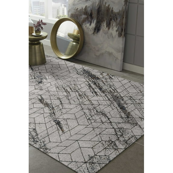 $94240current price $942.40118" X 158" Grey Polypropylene and Polyester Rug
