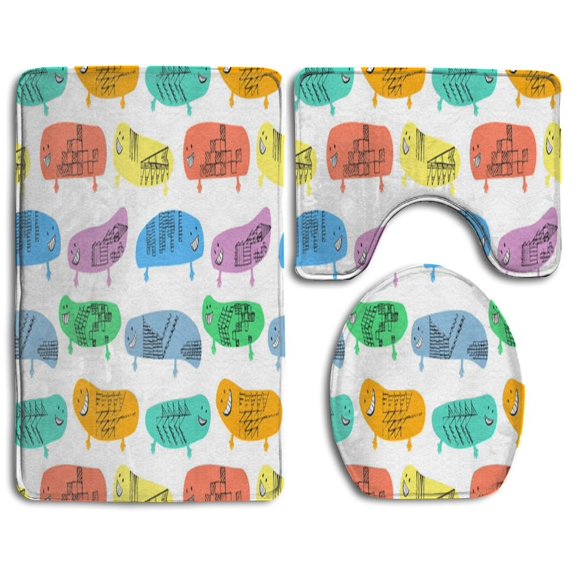 Hero image 0 of PUDMAD Cartoon Bug 3 Piece Bathroom Rugs Set Bath Rug Contour Mat and Toilet Lid Cover, 0 of 2
