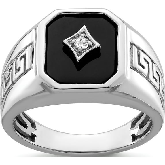 14K White Gold Onyx And Diamond Greek Key Design Mens Ringsize 10 (Width 3.6 To 14.6) - Jbsp