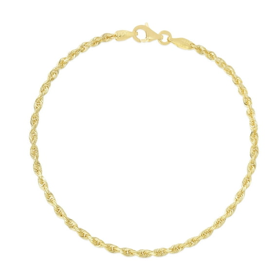 14K Yellow Gold 8in 2.5mm Solid Diamond Cut Rope Chain Bracelet with Lobster Clasp