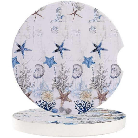 Hero image 0 of FMSHPON Theme Stars and Shells Set of 6 Car Coaster for Drinks, Absorbent Ceramic Stone Coasters Cup Mat with Cork Base for Home Kitchen Room Coffee Table Bar Decor, 0 of 5