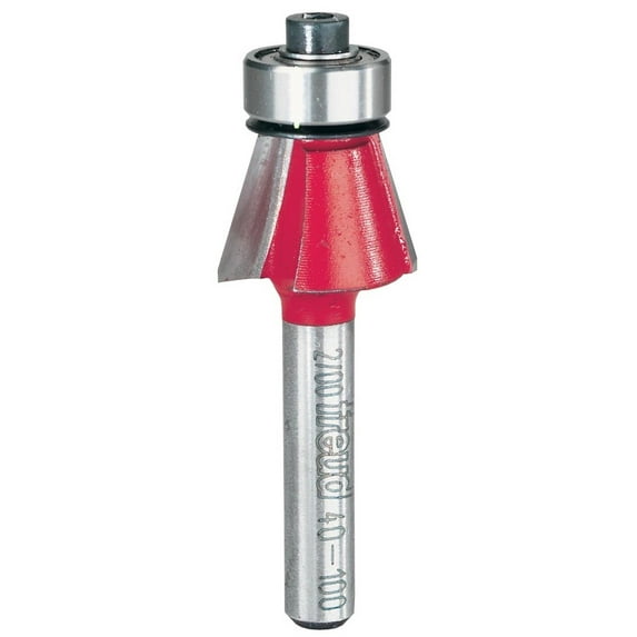 Includes (1) 40-100 Router Bit. 23/32" (Dia.) X 15 degree chamfer router bit with 1/4" shank. Chamfer size easily adjusts by changing the height of the bit or moving the fence. Cuts all composition materials, plywood, hardwood, and softwood Use on hand-held and table-mounted routers.