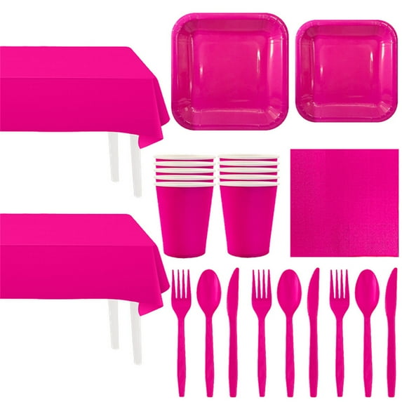 155 Pcs Hot Pink Paper Dinnerware Set Birthday Party Supplies Decorations Set Serves 20 Guests Including Plates Napkins Cups Forks Spoons Knives,Tablecloth,Tableware Set for Party Decorations155 Pcs Hot Pink Paper Dinnerware Set Birthday Party Supplies Decorations Serves 20 Guests Including Plates Napkins Cups Forks Spoons Knives Tableclo