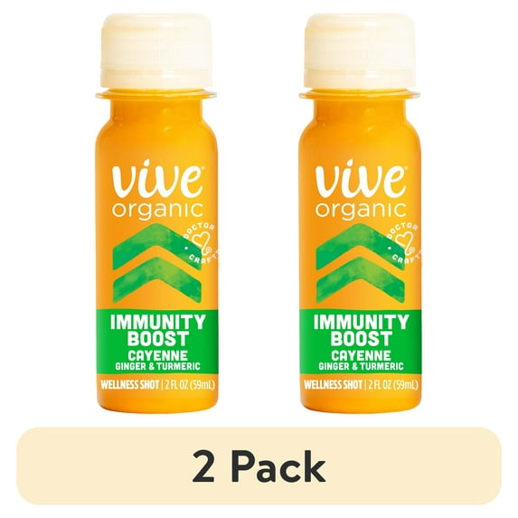 (2 pack) Vive Organic Immunity Boost Shot, Cayenne, Ginger and Turmeric Wellness Shot, 2 fl oz Bottle2 pack Vive Organic Immunity Boost Shot Cayenne Ginger and Turmeric Wellness Shot 2 fl oz BottleVive Organic Immunity Boost Shot Cayenne Ginger and Turmeric Wellness Shot 2 fl oz Bottle