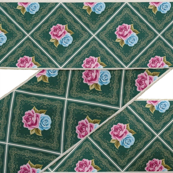 Hero image 0 of IBA Indianbeautifulart Green Check|Leaves & Rose Floral Fabric Laces For Crafts Printed Dupion Trim Fabric Sewing Border Ribbon Trims By 9 Yard 4 Inches, 0 of 1
