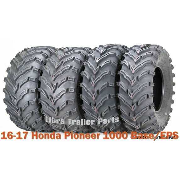 Full set: 2 front tires (27x9-12) and 2 rear tires (27x11-12) fit for 16-17 Honda Pioneer 1000 Base/EPS. Dynamic tread pattern provides exceptional acceleration and traction. Versatile tread patterns perform well in soft to hard pack conditions. Lug design provides better braking control. Heavy 6 ply rated construction resists punctures and abrasions. Tires only, wheels are not included.