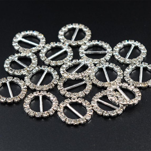 Hero image 0 of 16 Pieces Round Shape Rhinestone Ribbon Buckles Sliders for Wedding Invitation Party Favor 14mm, 0 of 9