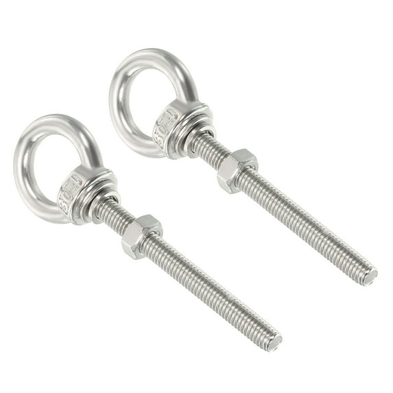 Hero image 0 of M4x60 3/16"x2.36" Stainless Steel Eye Bolts Threaded Screw Eyebolt Shoulder Ring with Nuts Washers 2 Set, 0 of 5