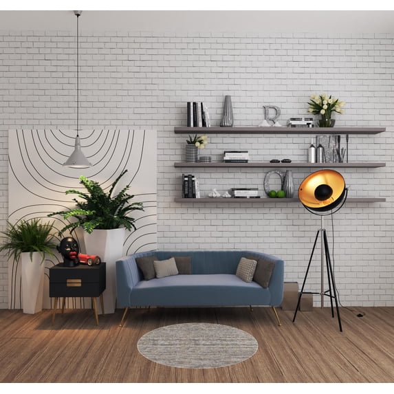 Hero image 0 of 4' Grey Blue And Yellow Round Wool Hand Loomed Handmade Area Rug, 0 of 5