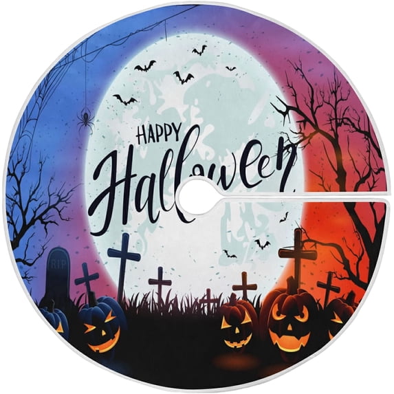 Hero image 0 of FMSHPON Big MoonHappy Halloween Xmas Christmas Tree Skirt Stand Mat for Holiday Party Decoration Indoor Outdoor 48 inches, 0 of 6