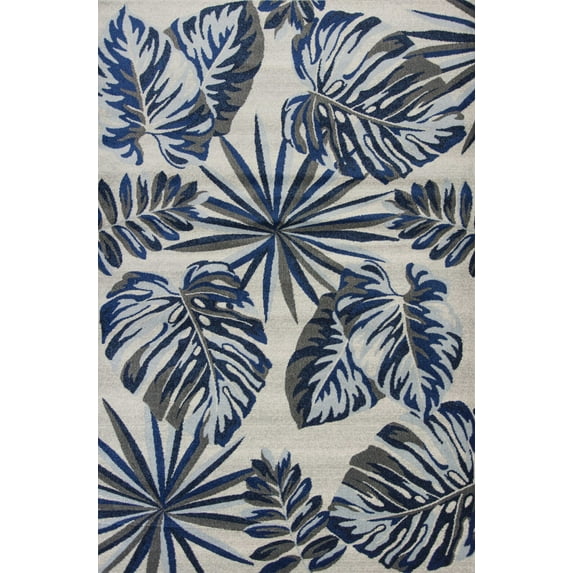 Hero image 0 of 8'x11' Grey Blue Machine Woven Oversized Tropical Leaves Indoor Area Rug, 0 of 3