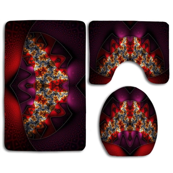 Hero image 0 of PUDMAD Background Fractal Patterns 3 Piece Bathroom Rugs Set Bath Rug Contour Mat and Toilet Lid Cover, 0 of 2