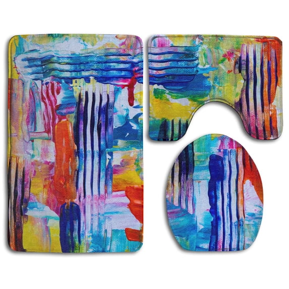 Hero image 0 of CHAPLLE Acrylic Paint Wall Colorful 3 Piece Bathroom Rugs Set Bath Rug Contour Mat and Toilet Lid Cover, 0 of 2