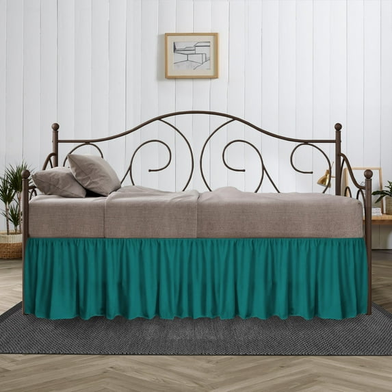 Hero image 0 of 18 Inch Drop Full Size Teal Solid Day Bed Skirt Lightweight Ruffled Pattern Split Corner Premium Hotal Quality With Flexible Elastic & Fade Resistent, 0 of 4