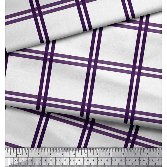 Hero image 0 of Soimoi Purple Rayon Fabric Window Pane Check Printed Fabric 1 Yard 56 Inch Wide, 0 of 3