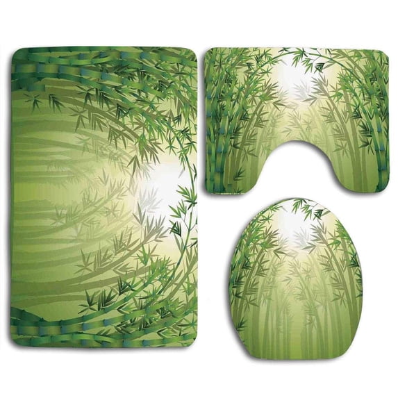 Hero image 0 of PUDMAD Bamboo Bamboo Trees in Rain Forest Far Eastern Wildlife Tropical Nature Style 3 Piece Bathroom Rugs Set Bath Rug Contour Mat and Toilet Lid Cover, 0 of 2