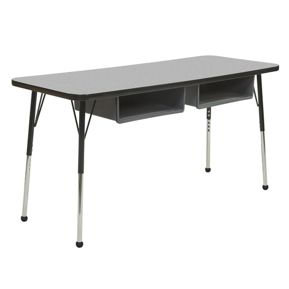 The ECR4Kids 18”x60” Rectangular Adjustable Activity Table with Book Boxes is perfect for the classroom, playroom, or home environment. The predrilled tables come with two grey book boxes that easily mount to the underside of the table to provide storage for textbooks and other school supplies. Table tops feature an easy to clean laminate with rounded edges for safety. A heat-sealed Thermo-Fused edge banding is applied to prevent against germ growth and provide an attractive professional look that will hold up against everyday use. Two types of black adjustable table legs are available: standard (19”-30”) with your choice of ball or swivel glide, or super (19”-30”) which includes four casters. Upper table legs are powder coated tubular steel and lower legs are chrome plated and adjust in 1” increments. ECR4Kids Tables with Book Boxes are not recommended with use with 18” chairs due to the suggested leg clearance from the bottom of the book box.
