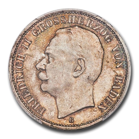 1910-G Germany Silver 3 Mark Baden Friedrich II MS-66 PCGS