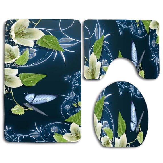 PUDMAD Fantasy Blues 3 Piece Bathroom Rugs Set Bath Rug Contour Mat and Toilet Lid Cover