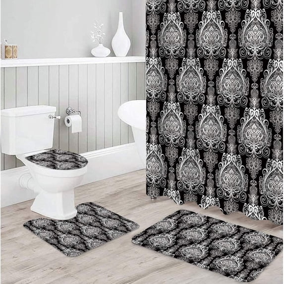 Hero image 0 of FMSHPON Antique 4 Piece Bathroom Set Shower Curtain Bath Rug Contour Mat and Toilet Lid Cover, 0 of 7