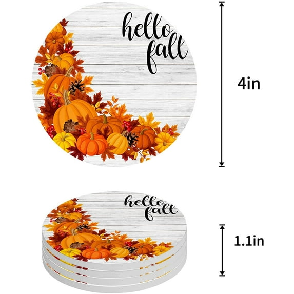 Hero image 0 of FMSHPON Hello Fall Pumpkin Retro Maple Leaves on Wood Plank Set of 6 Round Coaster for Drinks, Absorbent Ceramic Stone Coasters Cup Mat with Cork Base for Home Kitchen Room Coffee Table Bar Decor, 0 of 6