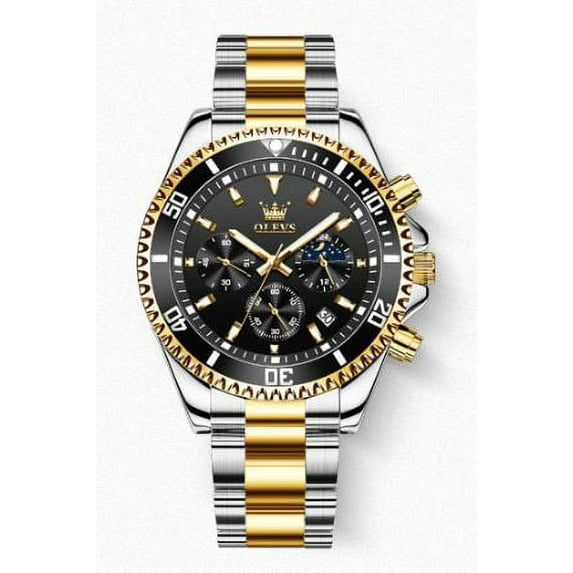 OLEVS Men's Stainless Steel Strap Waterproof Multifunctional Three-eye Quartz Watch