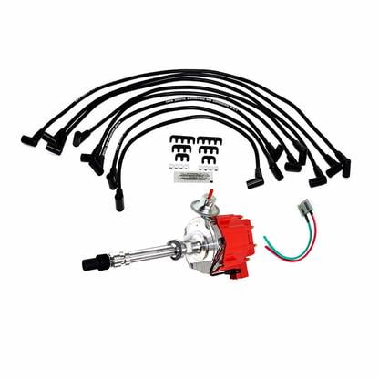 A-Team Performance HEI Distributor w/SBC Under the Exhaust Spark Plug Wires & HEI Pigtail Harness Complete Kit for Chevrolet Chevy GM GMC SBC 262 265 267 283 302 350 383 400 Red Cap