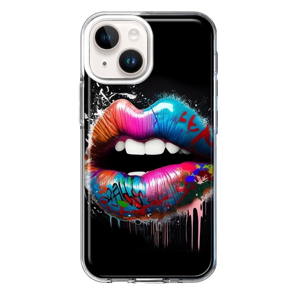 Hero image 0 of MUNDAZE Apple iPhone 14 Shockproof Clear Hybrid Protective Phone Case Colorful Lip Graffiti Painting Art Cover, 0 of 5
