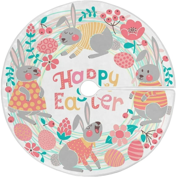 Hero image 0 of FMSHPON Happy Easter CardCute Bunnies Xmas Christmas Tree Skirt Stand Mat for Holiday Party Decoration Indoor Outdoor 48 inches, 0 of 6