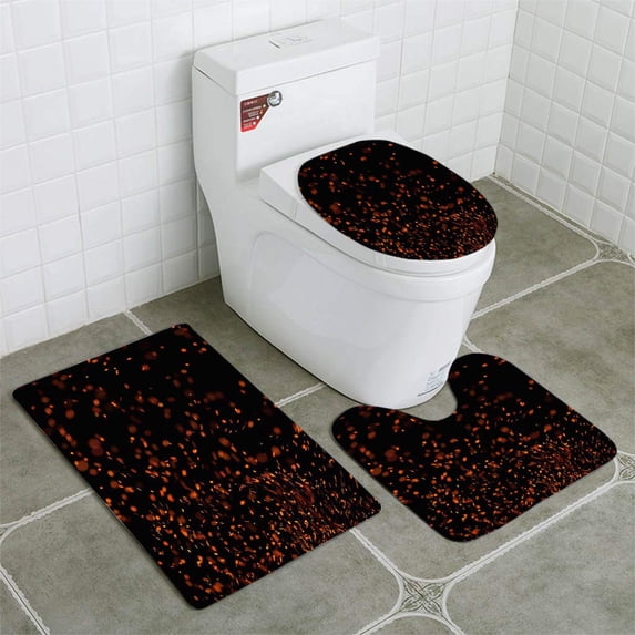 Hero image 0 of PUDMAD Fire Sparks Isolated on Black 3 Piece Bathroom Rugs Set Bath Rug Contour Mat and Toilet Lid Cover, 0 of 2