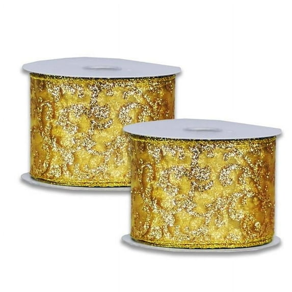 Hero image 0 of Queens of Christmas RBN-19312-GO-2PK 2.5 in. Wide 10 yards Ribbons, Gold - Pack of 2, 0 of 1