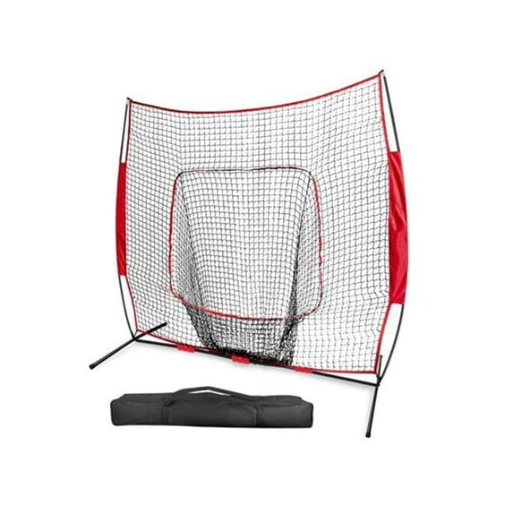 Fresh Fab Finds FFF-GPCT1810 7 x 7 ft. Baseball Softball Teeball Practice Batting Hitting Pitching Training Net with Bow Frame Carrying Bag for Solo Team Training