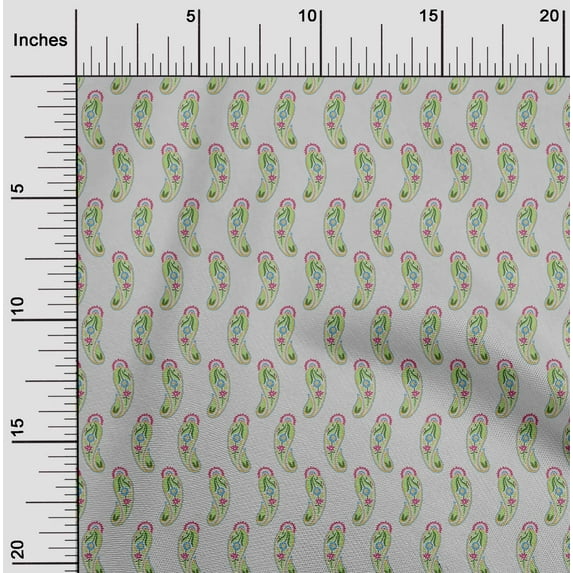 oneOone Cotton Poplin Twill Light Gray Fabric Leaves & Paisley Block Dress Material Fabric Print Fabric By The Yard 56 Inch Wide