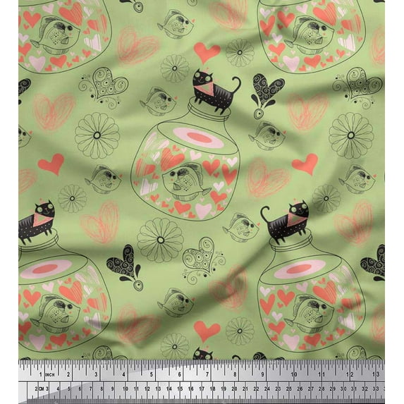 Hero image 0 of Soimoi Silk Fabric Floral,Pot & Cat Kids Print Fabric by Yard 42 Inch Wide, 0 of 1