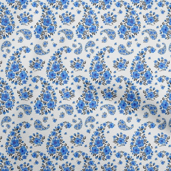 Hero image 0 of oneOone Viscose Chiffon Medium Blue Fabric Asian Paisley With Floral Quilting Supplies Print Sewing Fabric By The Yard 42 Inch Wide, 0 of 4