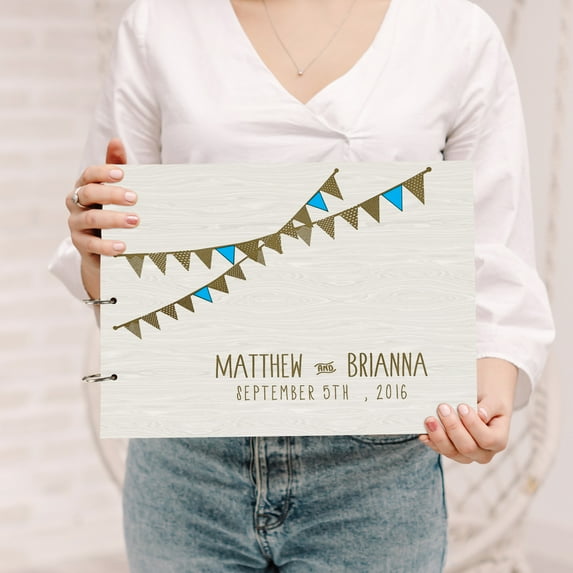Hero image 0 of Darling Souvenir Personalized Engraved Laser Cut Wedding Guest Book Wooden Cover Sign-in Book Registry Guestbook Scrapbook-D7, 0 of 7