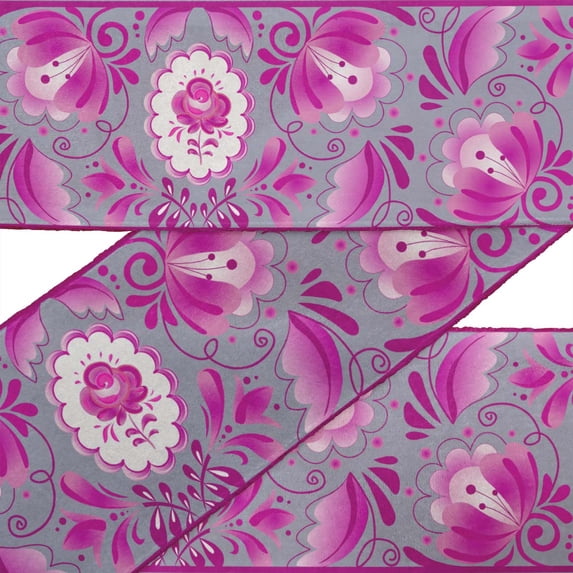 Hero image 0 of IBA Indianbeautifulart Gray Leaves & Floral Artistic Dupion Trim Fabric Sewing Fabric Lace Dressmaking Printed Sewing Lace By 9 Yard 4 Inches, 0 of 1