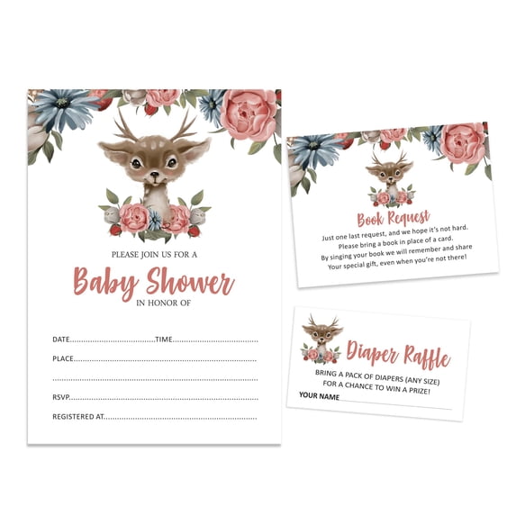 Hero image 0 of Inkdotpot Set Of 30Deer Baby Shower Invitations-Diaper Raffle Tickets And Baby Shower Book Request Cards Jungle Animals Invites Its A Boy Its A Girl, 0 of 5