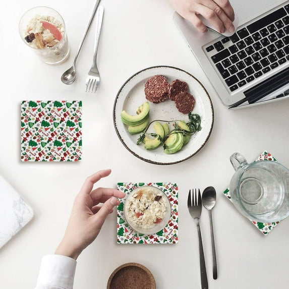 Hero image 0 of FMSHPON Merry Christmas Xmas Tree Winter Christmas Joy Set of 6 Coaster for Drinks, Absorbent Ceramic Stone Coasters Cup Mat with Cork Base for Home Kitchen Room Coffee Table Bar Decor, 0 of 4