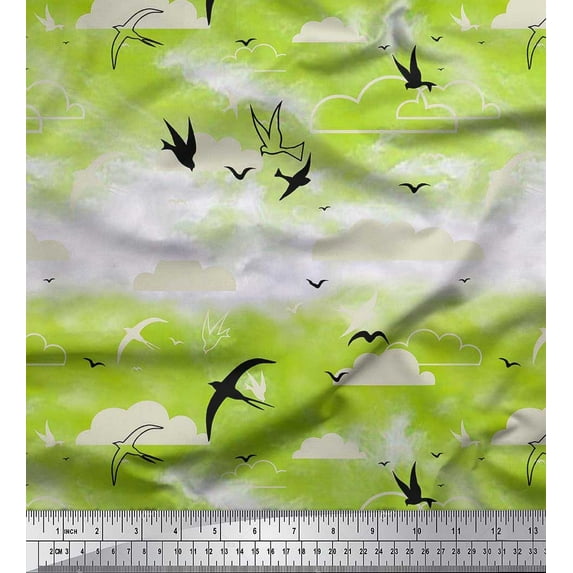 Hero image 0 of Soimoi Crepe Silk Fabric Clouds & Flying Swift Bird Print Fabric by the Yard 42 Inch Wide, 0 of 1