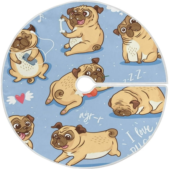 Hero image 0 of FMSHPON Funny Cartoon Pug Pattern Xmas Christmas Tree Skirt Stand Mat for Holiday Party Decoration Indoor Outdoor 48 inches, 0 of 6
