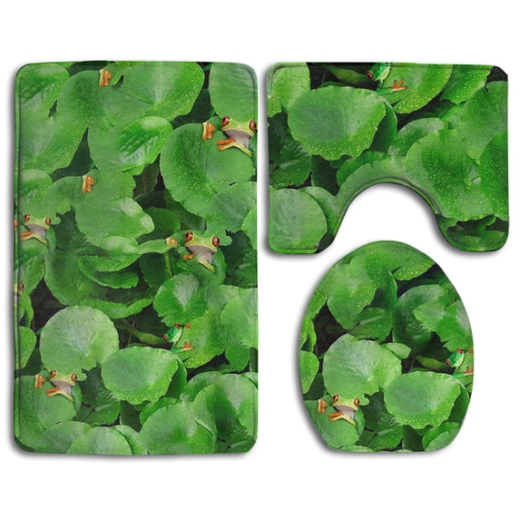 Hero image 0 of PUDMAD Green Leaves and Frog 3 Piece Bathroom Rugs Set Bath Rug Contour Mat and Toilet Lid Cover, 0 of 2
