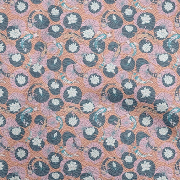 Hero image 0 of oneOoneCottonJerseyLightPeachFabricAsianJapaneseKoiFishWithAbstractFlowerDiyClothingQuiltingFabricPrintFabricByYard58InchWide, 0 of 4