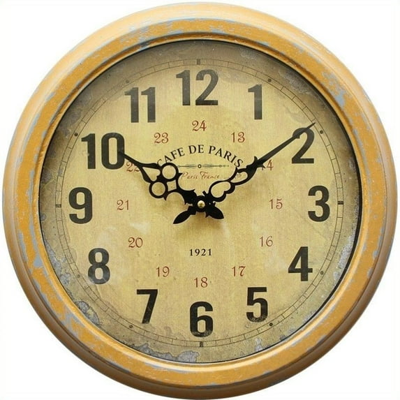 Yosemite Circular Iron Wall Clock with Distressed Yellow Iron Frame