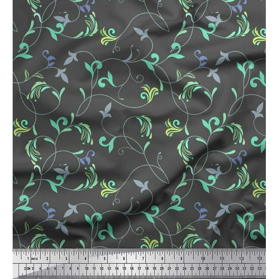 Hero image 0 of Soimoi Gray Modal Satin Fabric Artistic Leaves Printed Craft Fabric by the Yard 42 Inch Wide, 0 of 3