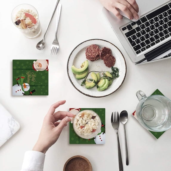 Hero image 0 of FMSHPON Merry Christmas Santa Claus Snowman Set of 4 Coaster for Drinks, Absorbent Ceramic Stone Coasters Cup Mat with Cork Base for Home Kitchen Room Coffee Table Bar Decor, 0 of 4