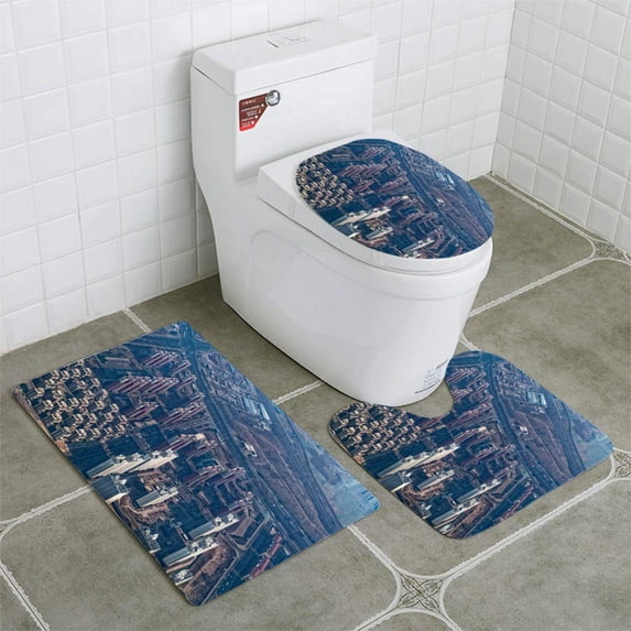 Hero image 0 of PUDMAD Looking Down from an Airplane onto Buildings in Peking 3 Piece Bathroom Rugs Set Bath Rug Contour Mat and Toilet Lid Cover, 0 of 2